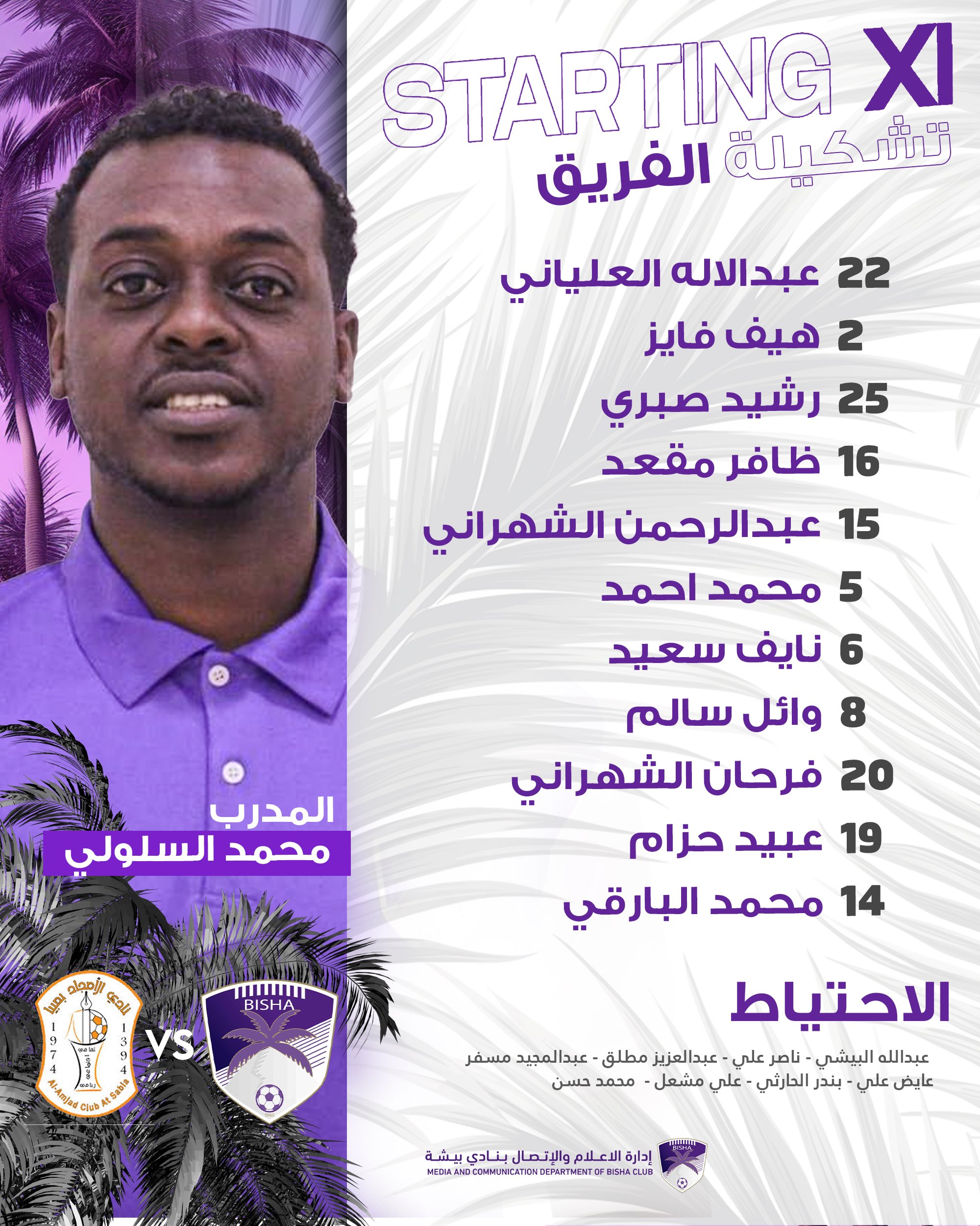 ودخل المدرب محمد السلولي المباراة بتشكيلة تضم كلا من اللاعبين: