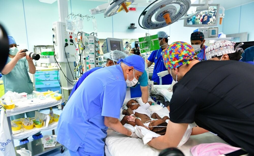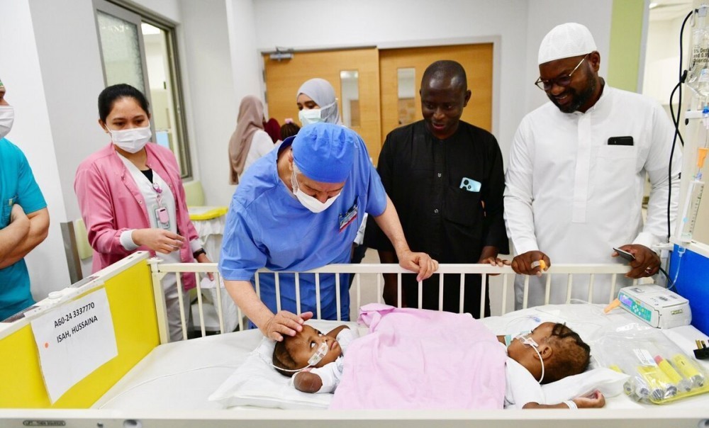 وأفاد معالي المستشار بالديوان الملكي المشرف العام على مركز الملك سلمان للإغاثة والأعمال الإنسانية رئيس الفريق الطبي والجراحي السعودي لعمليات فصل التوائم السيامية الدكتور عبد الله بن عبد العزيز الربيعة في تصريح صحفي أن التوأم السيامي النيجيري (حسنة وحسينة) قدمتا إلى المملكة في 16 ربيع الآخر 1445هـ الموافق 31 أكتوبر 2023م، وقام الفريق الطبي بعد دخول التوأم إلى مستشفى الملك عبدالله التخصصي للأطفال بإجراء فحوصات دقيقة ومتعددة لهما وعقد عدة اجتماعات توصل من خلالها إلى أن التوأم يشتركان في عدة مناطق في أسفل البطن و الحوض وأسفل العمود الفقري والأعصاب السفلية للعمود الفقري، وقرر إجراء عملية أولية لهما بفصل قناة العمود الفقري، حيث قام الفريق الطبي المختص بجراحة الأعصاب بإجراء هذه العملية منذ عدة أسابيع ، بعد ذلك عقد الفريق الطبي والجراحي عدة اجتماعات وقرر الفريق إجراء عملية الفصل اليوم الخميس.