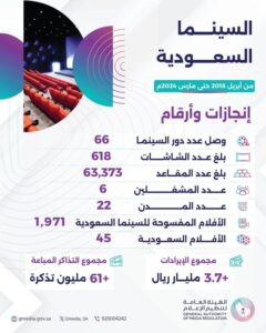 وأوضحت الهيئة: من أبريل 2018 حتى مارس 2024 تم فسح 1971 فيلمًا سينمائيًّا في السينما السعودية.