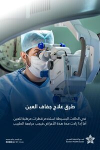 وأوضح “صحي الشرقية” أن طريقة علاج جفاف العين في الحالات البسيطة تكون باستخدام القطرات المرطبة، لكن في حال زادت مدة الأعراض يجب مراجعة الطبيب.