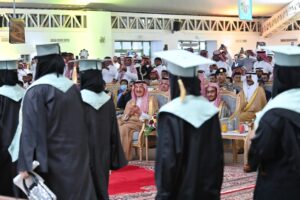 وكان سموّ أمير جازان قد شهد مسيرة الخرّيجين والخرّيجات في بداية الحفل المعدّ بهذه المناسبة، تخلّله عرض مرئيّ يحكي مسيرة التدريب التقنيّ والمهنيّ ومخرجات المؤسّسة، وعرض مبادرة ملهمة وأبريت “أنا التقني” والتقاط الصور الجماعية مع الخريجين والخريجات.
