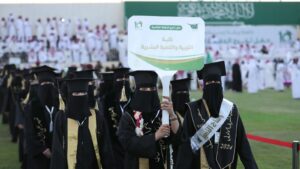 وشهد الحفل عرض أوبريت “بالطموح نعيش في رؤية وطننا”، وكلمة للخريجين، وفي الختام تم تكريم أوائل الخريجين، وسط مشاعر الفرح والسرور من الطلبة وأسرهم.
