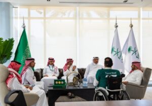 استضاف نائب رئيس اللجنة الأولمبية والبارالمبية السعودية، الأمير فهد بن جلوي بن عبدالعزيز بن مساعد، بحضور الرئيس التنفيذي والأمين العام للجنة عبد العزيز باعشن، اليوم الثلاثاء، بمقر اللجنة بالرياض بلاعب المنتخب السعودي لألعاب القوى البارالمبي عبدالرحمن القرشي، عقب تحقيقه الميدالية الذهبية لسباق 100م كراسي متحركة (T53)، في بطولة العالم لألعاب القوى البارالمبية التي اختتمت في مدينة كوبي اليابانية الأسبوع الماضي.