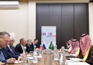 اجتمع الأمير فيصل بن فرحان بن عبد الله وزير الخارجية، اليوم، وزير خارجية روسيا الاتحادية سيرجي لافروف، على هامش مشاركة المملكة، كدولة مدعوة للانضمام لمجموعة بريكس، في الاجتماع الوزاري لمجموعة بريكس في مدينة نيجني نوفغورود الروسية.