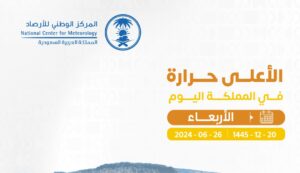 أفاد المركز الوطني للأرصاد بأن أعلى درجات الحرارة المسجلة اليوم الأربعاء 2024/6/26م كانت في الأحساء حيث سجلت 47 درجة.