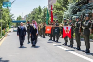 وفور وصول وزير الدفاع أُجريت لسموه مراسم استقبال رسمية، حيث عزف السلام الوطني للبلدين، واستُعرض حرس الشرف، ثم صافح سموه أعضاء الوفد التركي، فيما صافح وزير الدفاع الوطني التركي أعضاء الوفد السعودي، ثم التقطت الصورة التذكارية، ووقع سموه في دفتر الشرف.