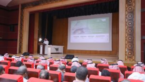 كما تحدث سعادة عميد عمادة التطوير والجودة د. محمد الأسمري عن مشروع الاعتماد البرامجي في مرحلته الثالثة، مستعرضا مؤشر قياس التقدم في تسليم الدراسة الذاتية والأدلة والشواهد وقائمة التحقق من استيفاء متطلبات الاعتماد البرامجي.