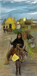 وهذه اللوحة التشكيلية تمثل حياة الناس قديما في القرى والبوادي.