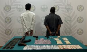 كما قبضت المديرية العامة لمكافحة المخدرات على مواطنَيْن بمنطقة نجران؛ لترويجهما مادة الإمفيتامين المخدر وأقراصًا خاضعة لتنظيم التداول الطبي، وجرى إيقافهما، واتخاذ الإجراءات النظامية بحقهما، وإحالتهما إلى النيابة العامة.