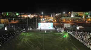 وتضمن الحفل عرض فيلم وثائقي وفيديو بعنوان “مشاعر وطنية” بالإضافة إلى أوبريت بعنوان “نحلم ونحقق”، وفي الختام شارك جميع الحاضرين في العرضة السعودية.