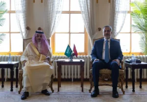 التقى الأمير فيصل بن فرحان بن عبدالله وزير الخارجية، في قصر دولما بهتشه بمدينة إسطنبول، اليوم، وزير خارجية الجمهورية التركية هاكان فيدان، وذلك في إطار زيارة الأمير فيصل الرسمية إلى تركيا.