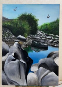 انتهى الفنان التشكيلي المبدع عبد الله النعمان من رسم لوحته الجميلة والتي سماها “منظر طبيعي”.