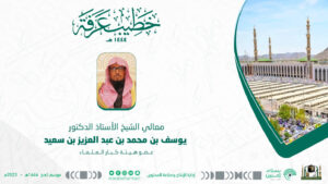 صدرت الموافقة الكريمة على تولي معالي الشيخ الدكتور يوسف بن محمد بن سعيد عضو هيئة كبار العلماء إلقاء خطبة يوم عرفه لهذا العام ١٤٤٤هـ، وفضيلة الشيخ الدكتور ماهر بن حمد المعيقلي إمام وخطيب المسجد الحرام إماماً احتياطياً.