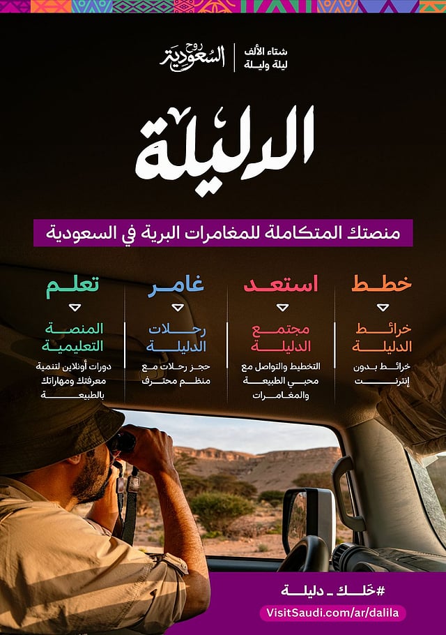 أصدرت روح السعودية الهوية الرسمية للسياحة السعودية “الدليلة” على موقعها الإلكتروني وتطبيق روح السعودية، ويقوم “الدليلة” بتعريف محبي المغامرات بالطرق البرية، إذ يحتوي على العديد من البرامج، والمنتجات، والأماكن السياحية المتنوعة، ويُسهل الوصول إلى عدد من الأماكن والباقات السياحية المختلفة التي تسهم في تعزيز تجربة الزوار من داخل وخارج المملكة ضمن برنامج “شتاء السعودية”.