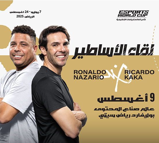 يتجهز جمهور الرياضة والألعاب الإلكترونية لمواجهة تاريخية واستثنائية تجمع بين أسطورتي كرة القدم البرازيلية، الظاهرة رونالدو والنجم كاكا، وذلك يوم الجمعة 9 أغسطس المقبل، على المسرح الرئيس في منطقة عالم صنّاع المحتوى ببوليفارد رياض سيتي، ضمن فعاليات كأس العالم للرياضات الإلكترونية 2025.