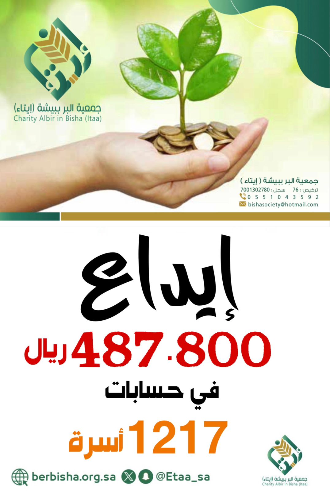 أودعت جمعية البر بمحافظة بيشة “إيتاء” مساعدات مالية للأسر التابعين للجمعية وذلك في حساباتهم البنكية.