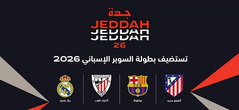 أعلن الاتحاد السعودي لكرة القدم، اليوم الإثنين، استضافة بطولة كأس السوبر الإسباني 2026 على أرض المملكة، بمشاركة أربعة من أبرز الأندية الإسبانية هي ريال مدريد، برشلونة، أتلتيكو مدريد، وأتلتيك بلباو.