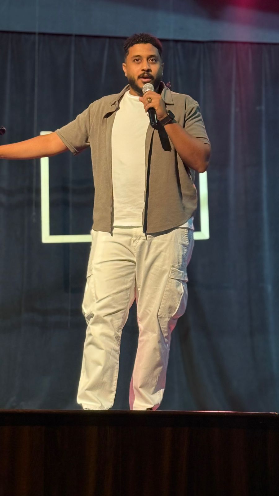 تلى ذلك مشاركة فنان الاستاند اب كوميدي الأستاذ أحمد زيدان بعدد من المشاهد التي لاقت استحسان الجمهور، ثم تلاه الحديث عن تجربته في مجال الاستاند اب كوميدي وفي نهاية الأمسية كرم مدير جمعية الثقافة والفنون بالطائف الأستاذ فيصل الخديدي المشاركين في اللقاء.