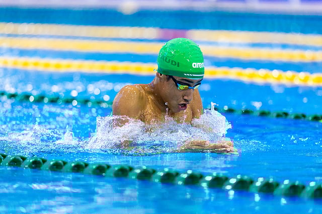 يبدأ السعوديون مشاركاتهم في التاسعة صباحاً عبر إلياس بنجر وعبدالرحمن فقيه (وزن 69 كجم)، وشادن فطاني (وزن 57 كجم). - السباحة: