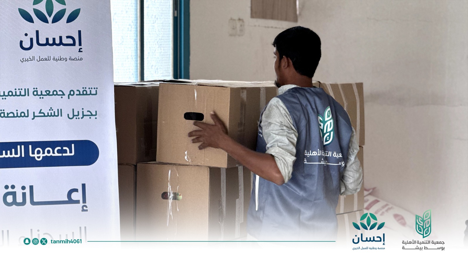 في إطار جهودها الاجتماعية لخدمة الأسر الأشد احتياجًا، نفّذت جمعية التنمية الأهلية بوسط بيشة مبادرة توزيع السلال الغذائية والحقائب المدرسية ضمـن برنامج إعانة أسر السجناء، وذلك بدعم كريم من منصة إحسان للعمل الخيري.