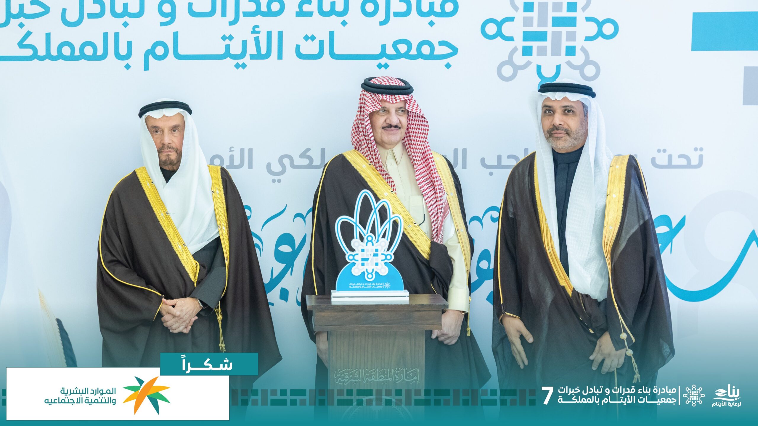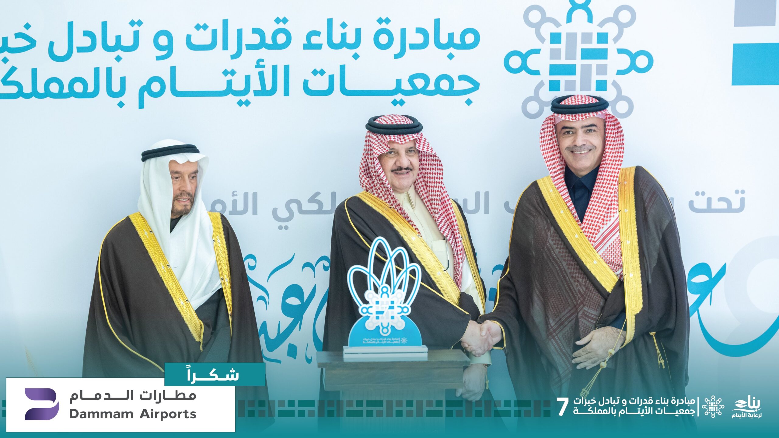 برعاية صاحب السمو الملكي الأمير سعود بن نايف بن عبد العزيز آل سعود، أمير المنطقة الشرقية، أُقيم اليوم الاثنين 22 ديسمبر 2025م، حفل تكريم الشركاء والداعمين للنسخة السابعة من مبادرة جمعية بناء «بناء القدرات وتبادل خبرات جمعيات الأيتام بالمملكة» التي تنعقد تحت شعار «الذكاء الاصطناعي والتحول الرقمي من أجل ابتكار الخدمات والمنتجات لتمكين الأيتام» بمشاركة 112 مشاركًا ومشاركة يمثلون 48 جمعية متخصصة من مختلف مناطق المملكة، من بينها جمعية رأفة.