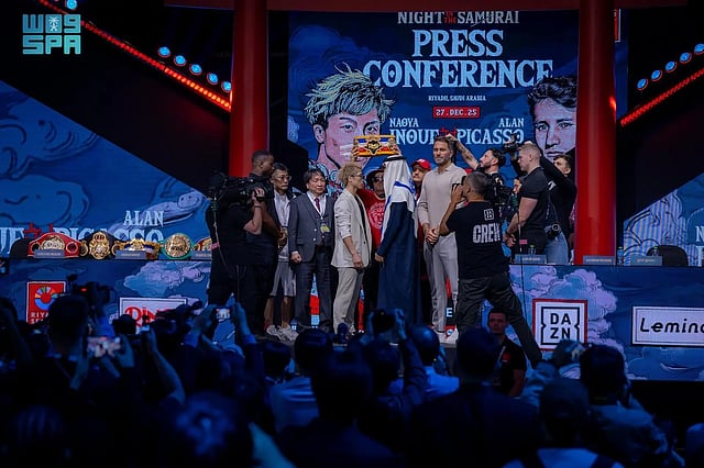 وشهد المؤتمر تصريحات نارية بين بطل اليابان ناويا إينوي والمكسيكي ألان بيكاسو، حيث أعرب الأخير عن فخره بالمشاركة في حدث عالمي بهذا الحجم، مؤكدًا استعداده الكامل لتقديم أداء قوي في نزال السبت. فيما وصف إينوي المواجهة بأنها محطة مهمة في مسيرته نحو التقدم في تصنيف وزن السوبر بانتام.