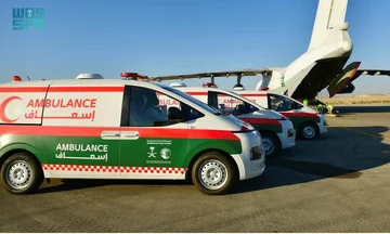استقرت في مطار العريش الدولي بجمهورية مصر العربية، اليوم، الطائرة الإغاثية السعودية الثامنة، التي يسيرها مركز الملك سلمان للإغاثة والأعمال الإنسانية، تحمل على متنها 3 سيارات إسعاف من أصل 20 سيارة إسعاف من المقرر وصولها تباعاً، تمهيداً لنقلها إلى المتضررين من الشعب الفلسطيني داخل قطاع غزة.
